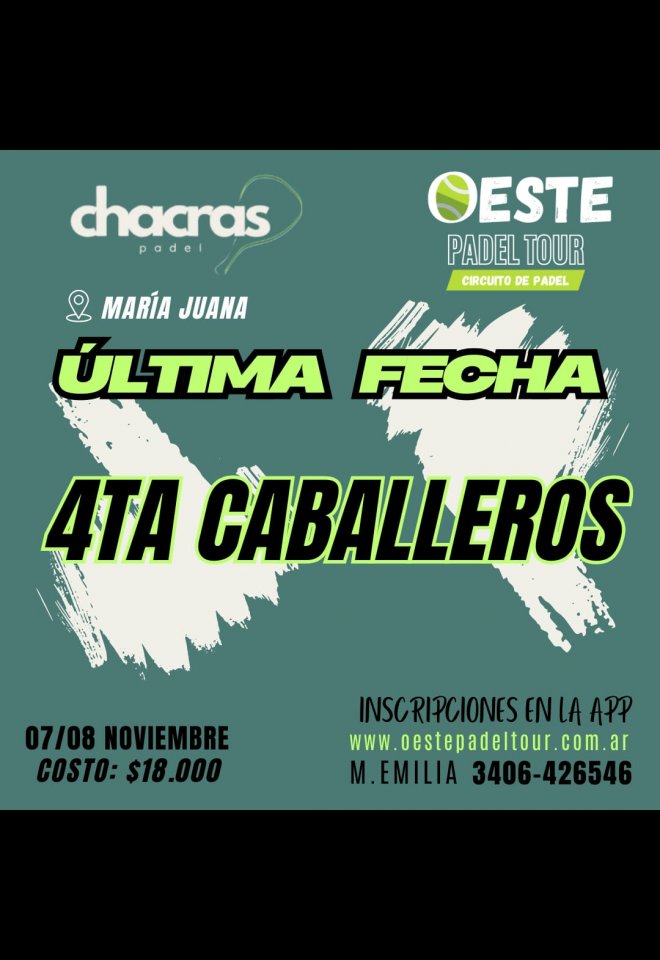 »» Evento: 4ta Caballeros »» Localidad: María Juana »» Fechas: 06/11/2025 al 09/11/2025